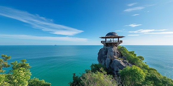※【神仙半島】(約 30 分鐘),位于普吉島最南端,由于在觀景臺上供奉了一尊四面佛,所以當地人稱它為“神仙半島”。壯觀的巖壁景觀,是神仙半島主要的風景特色,巖壁下的圓石、棕櫚樹交錯是東南亞特有的沿海風情,海流漩渦和海浪的壯麗氣勢,是普吉島著名的旅游景點,從這可眺望到遠處離島。