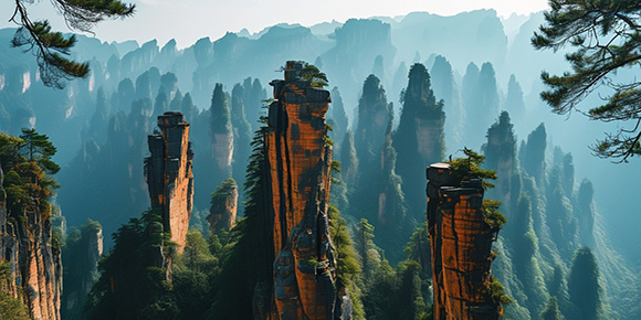 袁家界-天子山-金鞭溪-阿巴砦景區 早餐后 BUS 赴中國第一個國家森林公園——【張家界國家森林公園】 (首道大門票已 含,景區內小交通百龍單程VIP 已含),盡情享受每立方厘米 10 萬負氧離子的純凈空氣, 欣賞中國最美的峽谷——【金鞭溪大峽谷】穿行于絕壁奇峰之間,溪谷有繁茂的植被,溪水 四季清澈,被稱為“ 山水畫廊 ”、“人間仙境 ”。逃離城市喧鬧,收獲久違的感動,自此戀 上這山野間的寧靜悠然。后乘百龍電梯上山,游覽【袁家界核心景區】《阿凡達》懸浮山原 型——哈利路亞山,探尋影視阿凡達中群山漂浮、星羅棋布的玄幻莫測世界;參觀云霧飄繞、 峰巒疊嶂、氣勢磅礴的迷魂臺,及天下第一橋等空中絕景。后乘環保車前往【天子山風景區】 “誰人識得天子面,歸來不看天下山 ”,可見天子山風光旖旎,景色秀美,景點眾多。