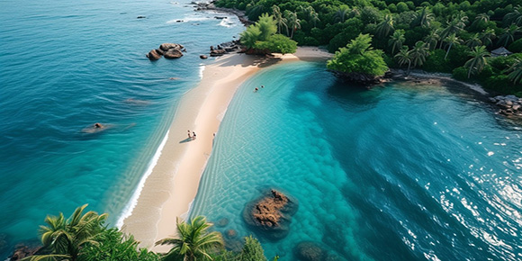 西島被譽為“海上桃源、動感天堂”,海天一色,沙灘柔軟,椰樹婆娑,是為數不多的沒有礁石或鵝卵石混雜的海島,于島上任性暢玩一天。