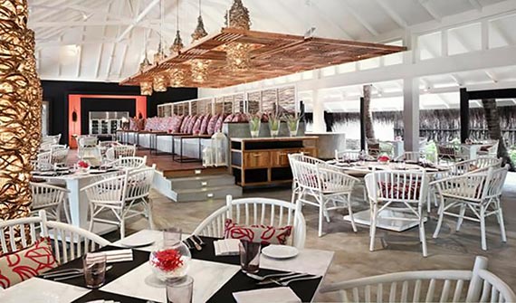 美食特色:葡萄酒、fuse雞尾酒、精致點心。餐廳介紹:Reef酒吧提供最好的葡萄酒、烈酒、自創的“Fuse”雞尾以及各類的精致點心:Pizza、三明治任您選擇。悠閑的午后,最適合來點小點心,像是三明治、PIZZA,偁著海風,看著棕欖樹隨風搖曳動,輕松舒服。客人可以享受不同的飲料和小吃。包括薄殼的比薩餅,以及泰姬珊瑚俱樂部的三明治,馬爾代夫和椰子香金槍魚三明治面包。