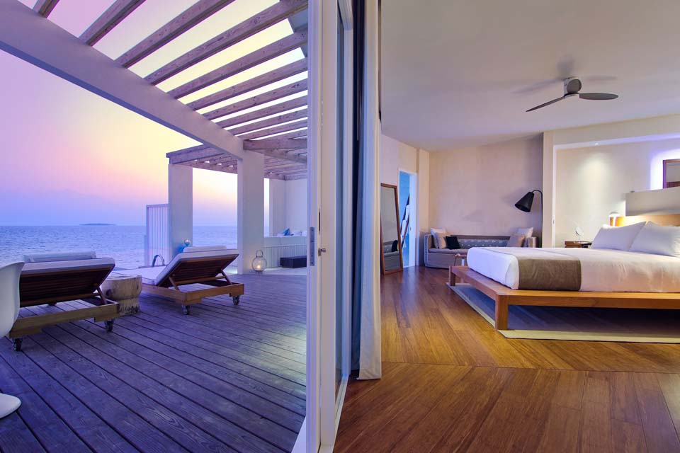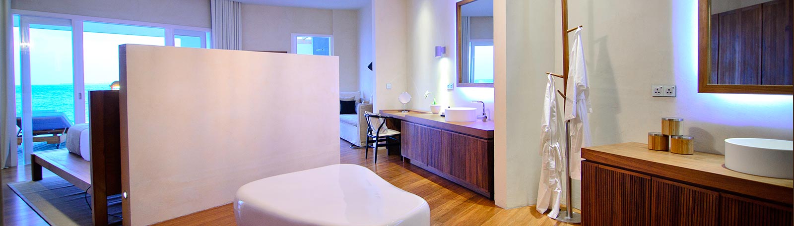 當(dāng)您在我們的海洋水上屋內(nèi)午休時,從您自己的室外露臺或淡水泳池都可以欣賞到令人著迷的海景和青綠色的環(huán)礁湖。那里是日光浴、休閑和用餐的完美之地。現(xiàn)代、時髦的房屋海洋水上屋內(nèi)設(shè)空調(diào)且能夠直接通達大海。