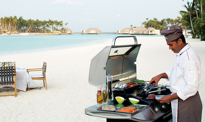 美食特色:法式美食。餐廳介紹:LE 1947在傳統法國美食基礎上進行了精妙的創新,餐廳坐落于島上的熱帶花園內,并可直接通向酒窖和雪茄吧。餐廳主廚將法餐的精致與馬爾代夫本地料理的熱情完美融合,創造出別具匠心的佳肴。