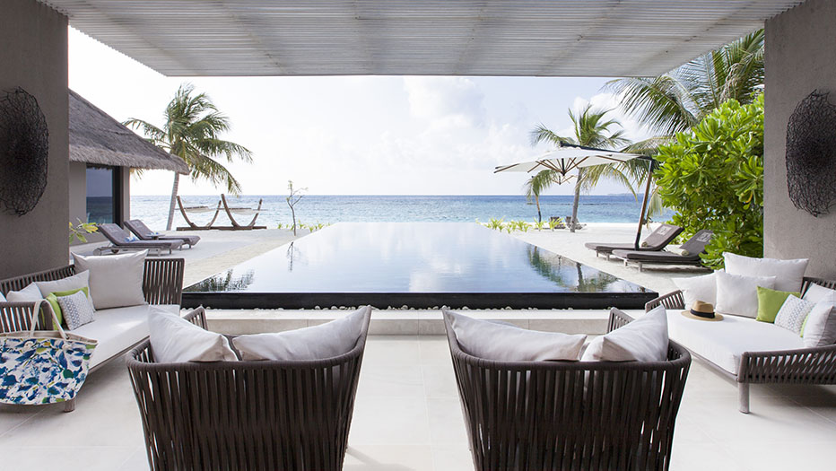 是目前馬代最奢華的酒店,由4個島嶼構成,房間面積240平以上的房間,每一棟別墅配有超大私人游泳池,各項設施頂級:如專屬訂制的奢華水上飛機。