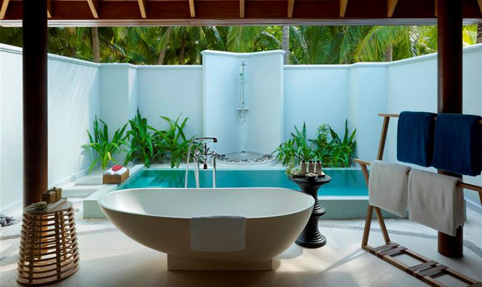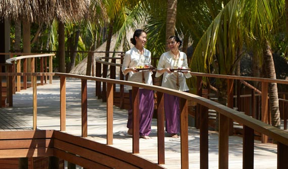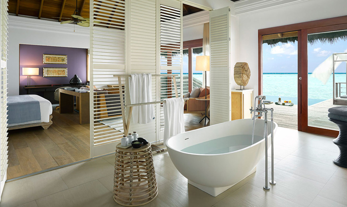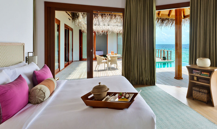 沿著木制小道一路向前,采用茅草屋頂的海洋亭躍然水上。在印度洋的映襯下,這一充滿熱帶風情的夢幻之地配備超大浴缸、室內和室外休息區,并直接通向富饒的珊瑚礁地帶。海洋亭裝飾奢華,洋溢出濃郁的泰式風情,透過玻璃門窗望去,美景盡收眼底。享受一次美好的泡沫浴或徜徉于如水晶般透徹的在私人泳池中,這是真正的水屋。
