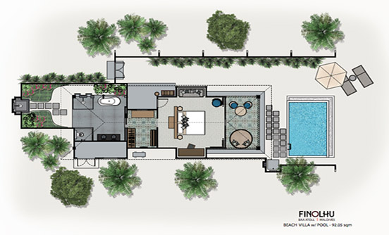奢華的熱帶園林,特色的私人海灘,綠松石finolhu瀉湖,一個寬敞的室外用餐露臺和日光躺椅和;海灘別墅還配有40英寸的平板電視,一個私人的葡萄酒及迷你酒吧,詳細和獨特的家具設(shè)計,配有浴缸和室內(nèi)和室外淋浴的獨立浴室。