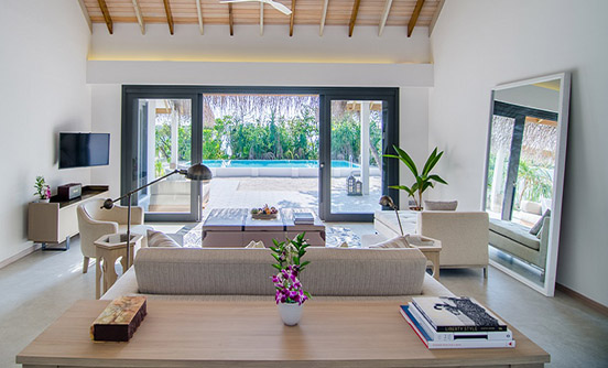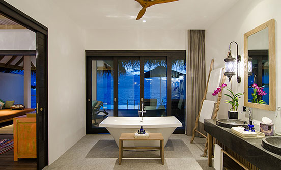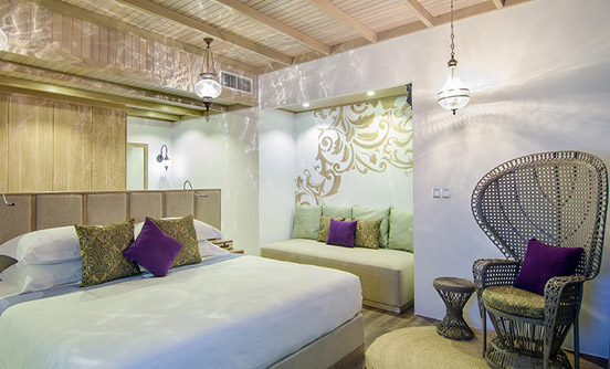 180sqm水上別墅的靈感來自法國里維埃拉的鮮艷色彩,可直接進入海洋,有個6m長的淡水游泳池以及設(shè)計獨特的家具和大型豪華的搖椅和一個私人陽臺室外的沙發(fā)床。 享受40英寸平板電視的私人葡萄酒及迷你酒吧、大型戶外陽臺配有躺椅和戶外淋浴,獨立衛(wèi)生間的海景浴缸和室內(nèi)淋浴而忽略了驚人的finolhu瀉湖和1.8公里長的沙灘。