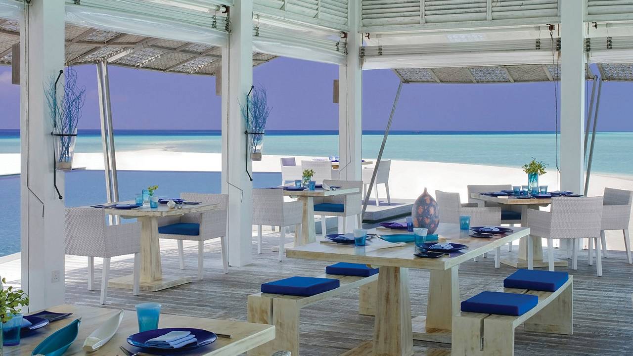 美食特色:意大利美食。餐廳介紹:在Blu 餐廳可以俯瞰 2 公里的廣闊礁湖,坐擁馬爾代夫最美麗的自然風光。無論是在餐廳亭樓,還是Blu 酒吧亭樓,都能觀賞到唯美、浪漫的落日余暉。該餐廳日間供應開胃菜、比薩和意大利面食,晚間供應精致的意大利美食。