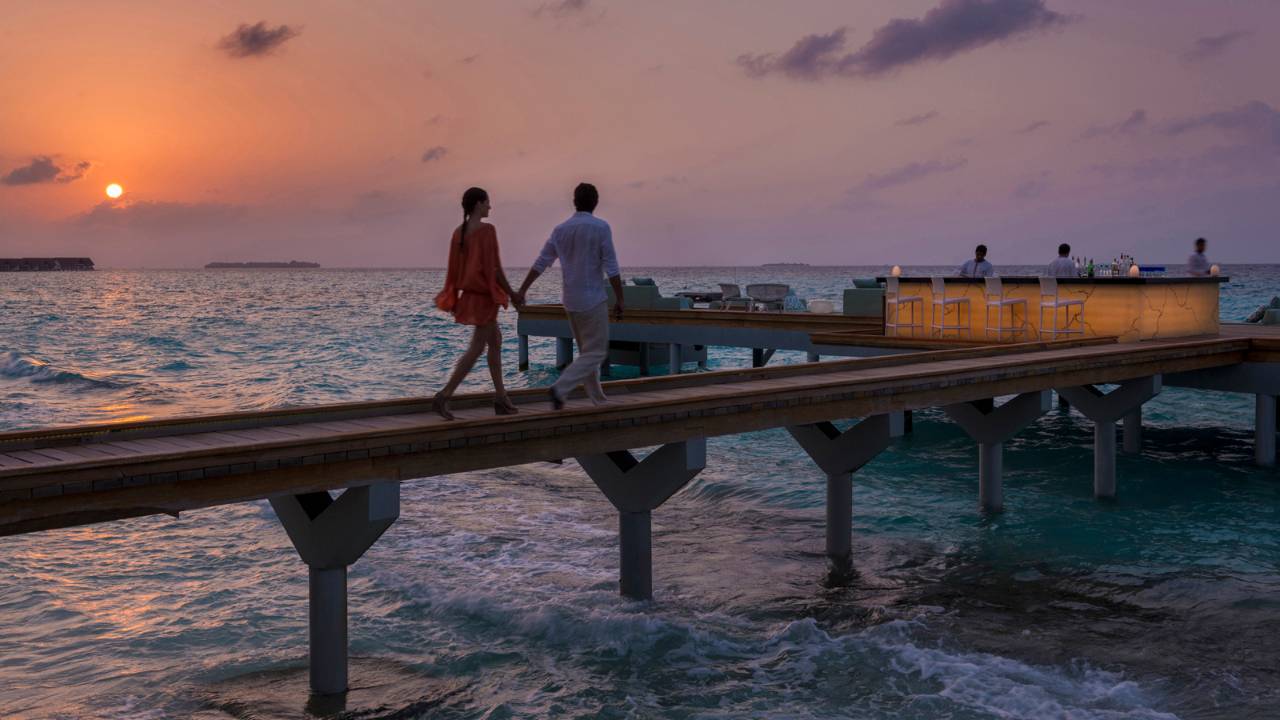 日出/日落雙臥室水上套房位于水上別墅碼頭的另一端,可一覽礁湖風光及日出或日落美景。在帶有泳池的延伸平臺上沐浴陽光,這里設有海...查看更多