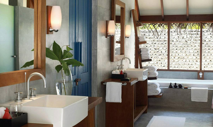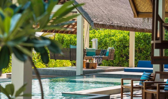 在海景小屋郁郁蔥蔥的熱帶花園中一覽礁湖美景,享受與大自然親密接觸的非凡樂趣。可以在露天棚屋(以茅草棚為頂的傳統小屋)內用餐和休息,或縱身泳池,感受清涼,或置身四周環繞的私密花園中享受日光浴。置身于別墅的私密氛圍中,無需擔心被打擾,也不用拉上窗簾,只需慵懶地躺在床上,便可觀賞迷人的天然海景。