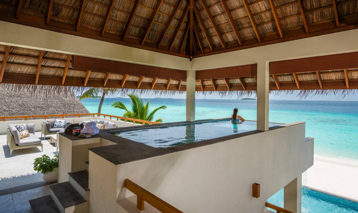 皇家沙灘別墅的亮點是這座20米長的泳池。泳池兩側設有沙發床、躺椅和私人海灘。別墅的私人淺水泳池上建有“浮島”餐廳,您可以在波光粼粼的水面享用美味。您可漫步于海灘上連綿的純白細沙、眺望湛藍海面的無垠美景,并在郁郁蔥蔥植物環繞中,享受難得的私人空間。