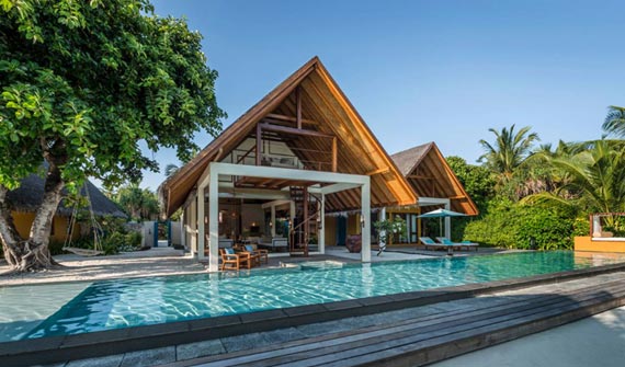 園林式別墅精致奢華,每一件家具都是精心定制。馬代傳統的房頂與現代化內飾完美結合。房間可住3大一小,2大二小,適合家庭入住。