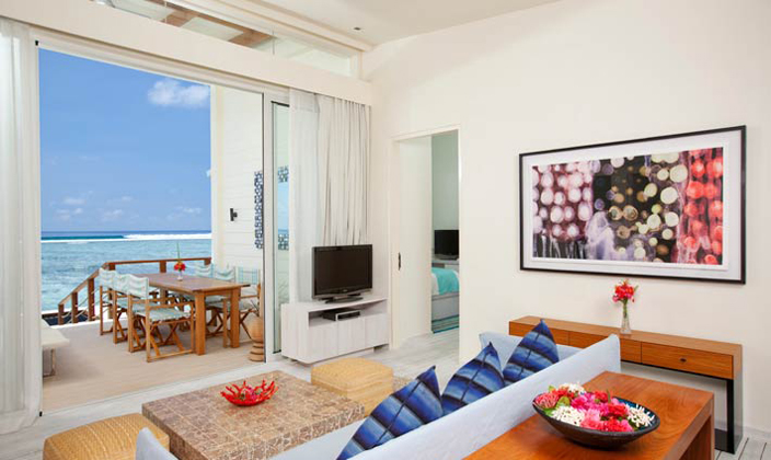 在康杜瑪島引人驚嘆的水上樓閣中一覽無(wú)余地欣賞日出日落、海洋與天空。這一兩臥室房型帶有寬敞的室內(nèi)、外生活空間,面積達(dá)170平米,是家庭度假的完美之選。