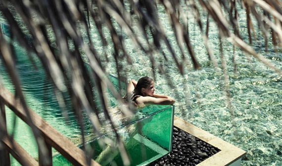 園林式別墅融入當?shù)靥厣?,將馬爾代夫傳統(tǒng)的茅草屋房頂與現(xiàn)代化內飾完美結合,家具精致價值高昂。水屋四面為落地玻璃,精致唯美。