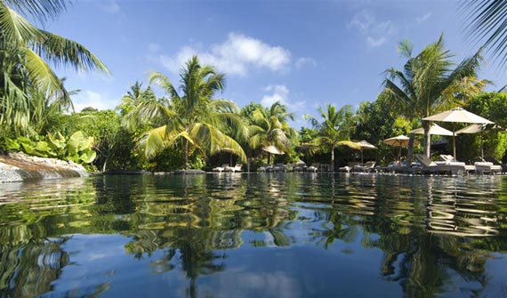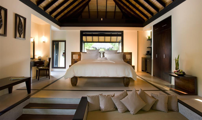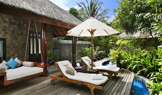 泳池沙灘別墅錯落有致地分布在島嶼郁郁蔥蔥的植被當中,雅致而不事張揚。開放式的內部設計讓沁人心脾的海風暢通無阻,開放式浴室、瀑布水池和配有舒適躺椅的陽臺同樣向大自然敞開胸懷。一間私人涼臺房直通海灘,是在日光下飽覽美景的完美場所。