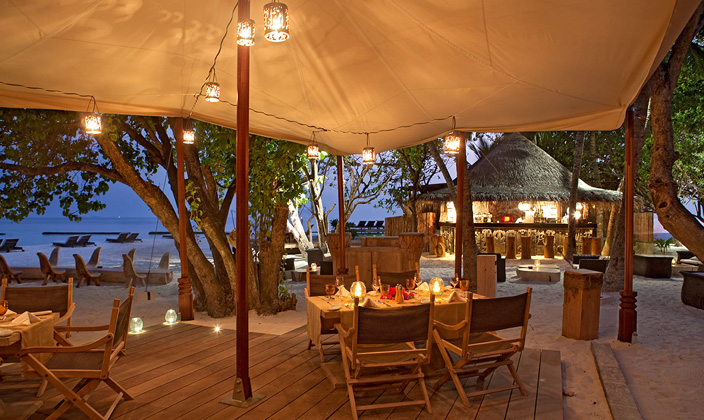美食特色:雞尾酒和飲料等。酒吧介紹:這個酒沙灘吧位于泳池后的沙灘上,在一個沉重的本土樹木下,特色民族裝飾。每當馬爾代夫完全日出之后,沙灘酒吧就是享受新鮮水果最好的地方,或者也可以從菜單上選擇一份冰茶。點心菜單可以在午餐和下午選用。這也是一個最浪漫的地方。