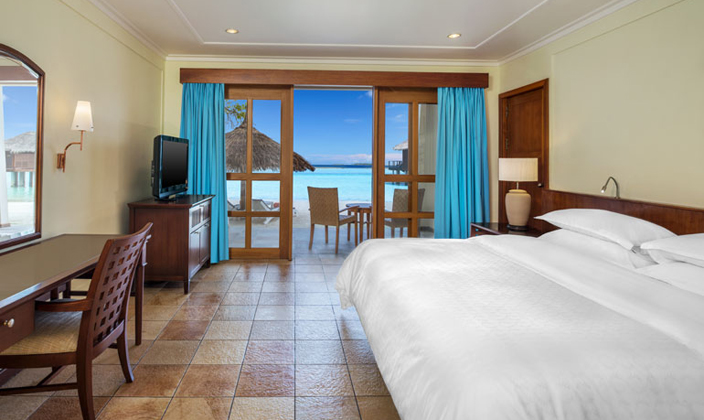 入住舒適的行政水上別墅,體驗美好難忘的浪漫時光。悠閑地躺在露臺躺椅上,欣賞水晶般清澈的海水,或退居室內,享受現代化的科技和設施。 客人擁有喜來登行政酒廊的獨享使用權,這里全天供應美食和飲料,并提供商務設施以及一個室外露臺和泳池。