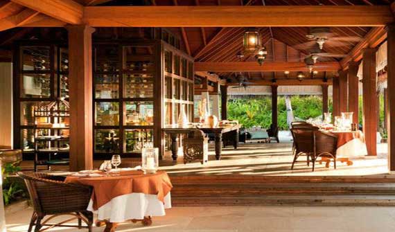 在美麗的水上柚木餐廳眺望海景,品嘗芳香的泰式料理,可以說是馬爾代夫最好的泰國餐。薇莉島安納塔拉的Baan Huraa由頂級泰國廚師們為您提供獨特的用餐體驗。我們的招牌菜包括來自泰南的椰汁咖喱和來自泰北的香辛料理,口味地道純正。Baan Huraa是馬爾代夫最精美的豪華泰式餐廳之一。(注:此餐廳在娜拉杜島和薇莉島中間的橋梁上,但屬于薇莉島,娜拉杜島和薇莉島同屬Anantara集團,可提前預約前去享受正宗的泰國美食。)