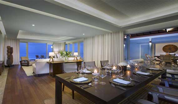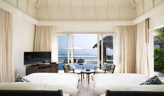 桃花源地,海濱靜居,盡享無與倫比的私密。300平方米寬敞迷人的空間,更有客房管家每天24小時貼身服務,悉心照顧您的每一需求。寬敞的硬木甲板直通印度洋海面,在日光躺椅上曬曬太陽,靜看海浪層層疊起。不遠處就是潔白細膩的沙灘和綠松石般的瀉湖,唯您獨享的海濱涼亭更令誘惑難以抵擋。在優美的別墅內盡情放松,雅致的硬木裝飾與經典設計和自然色調融為一體。在您的個人蒸汽房內酣暢淋漓,再去享受瀑布淋浴的清涼愜意。私密的35平方米泳池,使用海洋風情的淺綠色瓷磚鋪就,暢游之后再浸入獨立的下沉式浴缸泡個熱水澡。探索各種現代化舒適便利與招牌奢華享受。