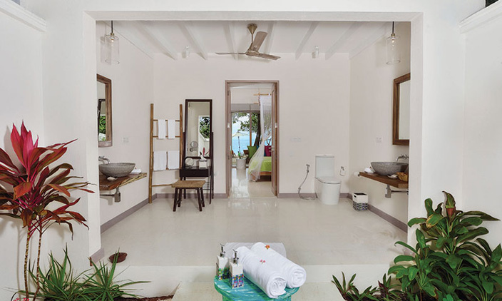 酒店共有116棟別墅,別墅活力和華美的室內(nèi)裝修與熱帶馬代設(shè)計(jì)完美融合,同時(shí)與島嶼郁郁蔥蔥的自然美景相得益彰。