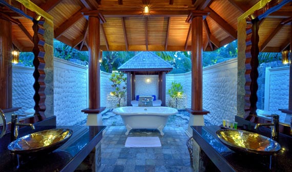 中大型島嶼,有50間別致的別墅,每幢寬敞的別墅都設有可欣賞壯麗景致的開放式浴室,設計獨特,面積將近200平方,私密性...