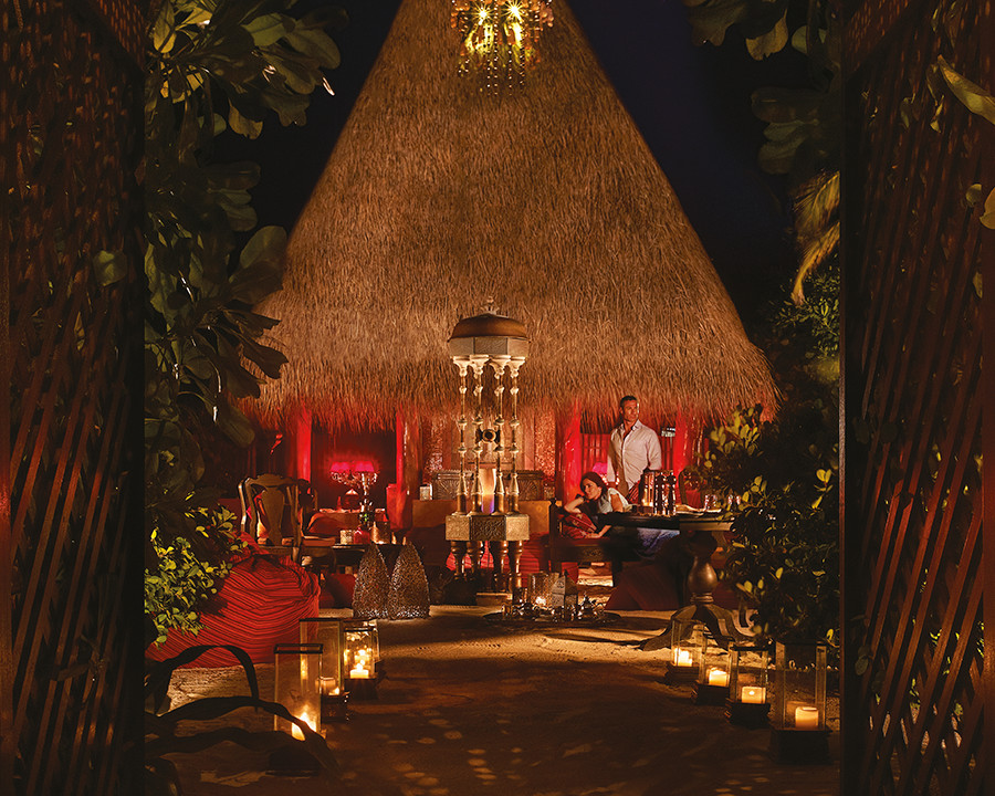 美食特色:阿拉伯菜。餐廳介紹:Fanditha 這家頗有異域風情的海濱餐廳供應零點阿拉伯菜肴,佐以頂級冰凍粉紅香檳及香檳,讓賓客盡享人間美味。 在休息區,客人可以悠閑地倚靠在沙發式墊枕和阿拉伯地毯上,抑或是慵懶地躺在竹椅或編織吊床上。 在特定的夜晚,餐廳還會舉辦露天午夜派對,同時有現場 DJ 進行表演,樹上搖曳的吊燈營造出輕松舒緩的氛圍。