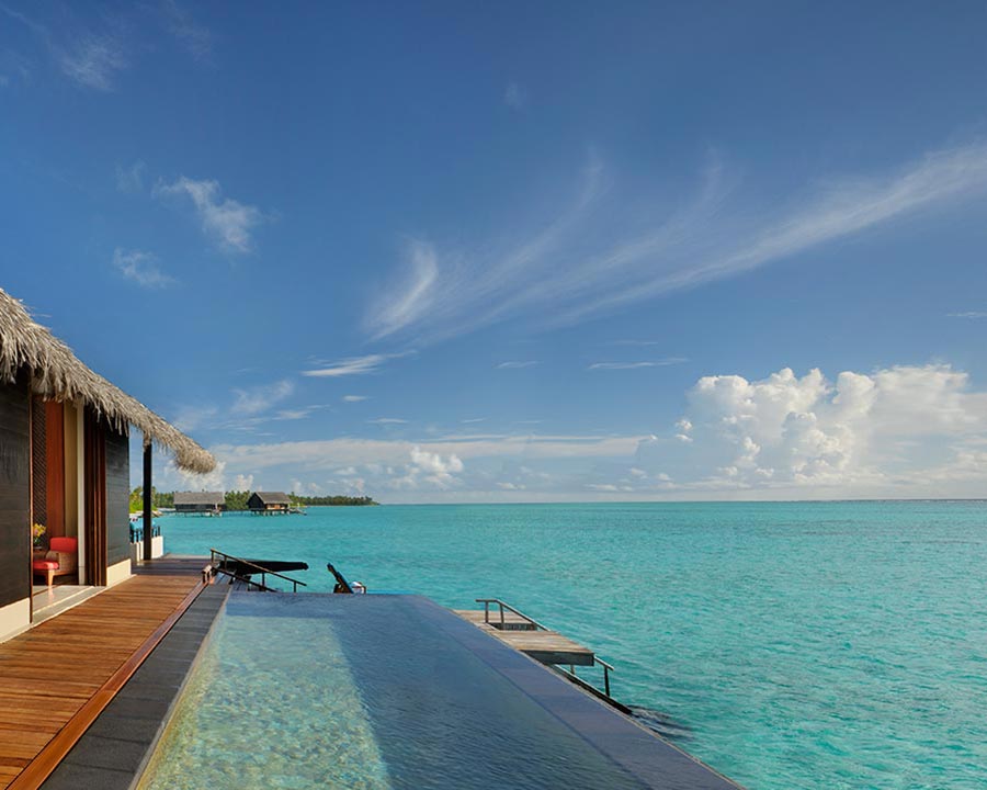 這些華麗的別墅通過支柱支撐在印度洋上,繞別墅而建的甲板面積達 33 平方米/355 平方英尺,非常適合戶外休閑與餐飲。別墅設計精美,傳承了馬爾代夫的精髓。每間別墅均配有 20 平方米/215 平方英尺的私人無邊際泳池、帶日光浴躺椅的平臺,以及獨立的按摩池。
