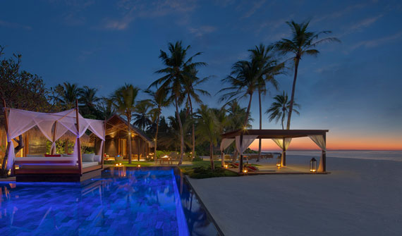 兩幢獨立別墅坐落在私密的原始海濱區域,環境雅致,是極致奢華的生活空間。一幢別墅除了擁有裝飾精美的起居區和用餐區外,還采用了雙臥設計,主臥設有一張特大床,次臥設有兩張大床,并且每間臥室內均設有豪華浴室,配有大浴缸和淋浴。另一幢別墅同樣豪華,設有寬敞的浴室、室內和室外淋浴以及私人陽臺。兩幢別墅共用一個面積 50 平方米/538 平方英尺的私人泳池、別致的戶外起居區和用餐區,以及一個直接進入瀉湖的私人入口。客人可請私人廚師在戶外用餐區烹飪美食。
