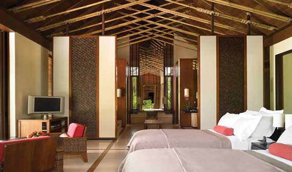 位于馬爾代夫的北馬累環礁(North Male Atoll),絕對是情調奢華型超5星級酒店的典型代表,酒店的設施不僅是最頂級的,其絕美的意境也是絕對無法復制的,無窮無盡的白色沙灘,溫柔的金色陽光,碎玉般透徹的海水和點綴其間的瀉湖,毫不夸張地說,沒有去過這里,相當于沒有見到真正的人間天堂。瑞提拉島是馬爾代夫最大的島嶼之一,度假村擁有客房130間,全部都以獨立別墅設計,不但擁有豪華的房間感覺,而且擁有完善的客房設施。