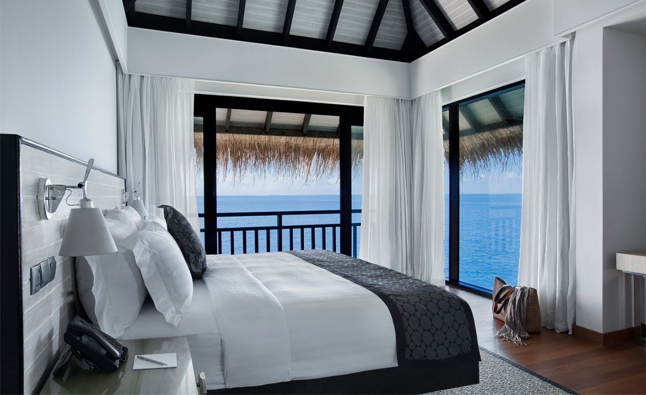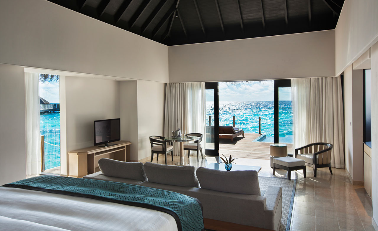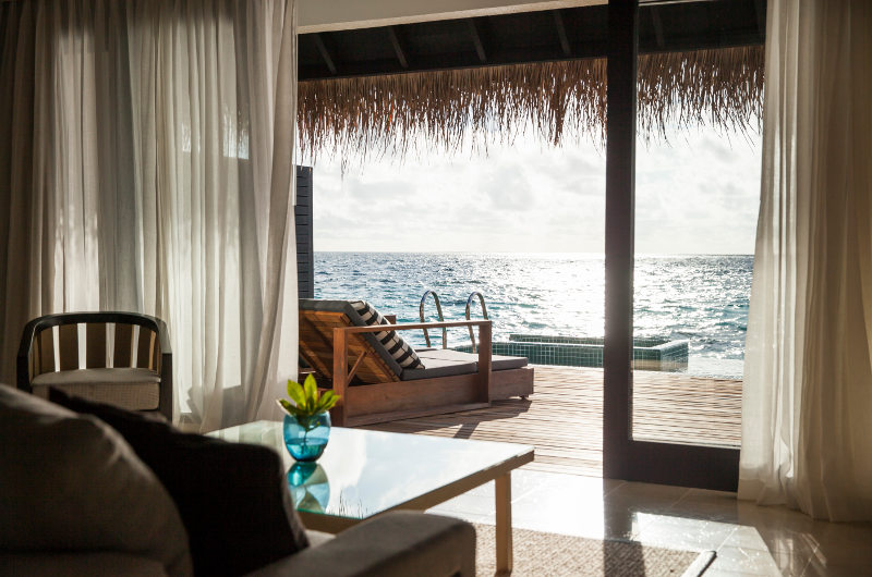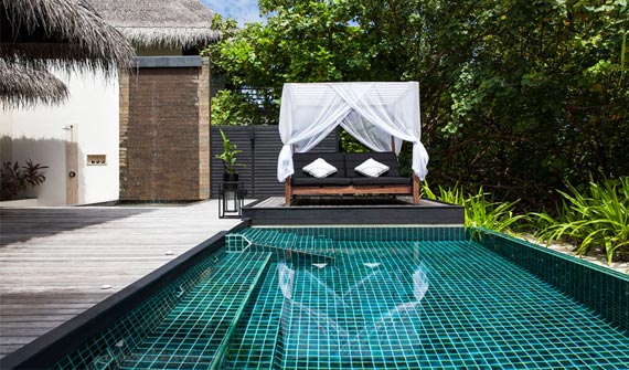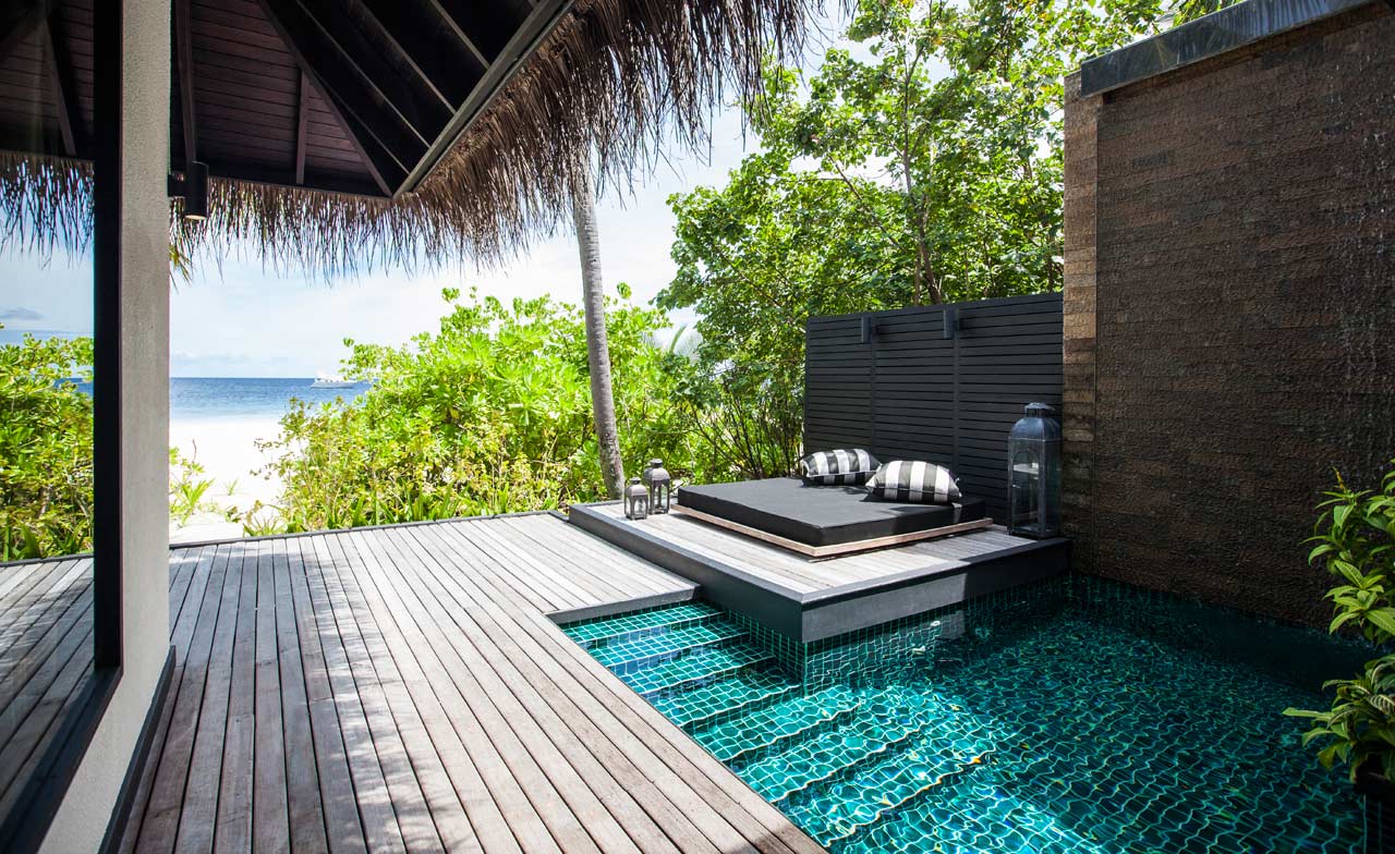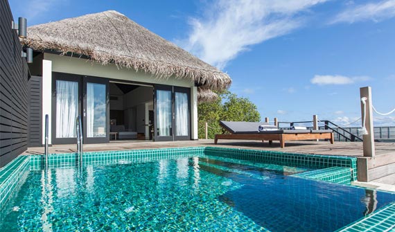 從海洋泳池別墅可以直接進入瀉湖原始水域,在5.2米的無邊泳池、戶外甲板或遮陰的日光躺椅你可以欣賞到驚人的印度洋景觀,落地窗休息讓你不會錯過陽光下的任何一刻的風景。客人可以從臥室或寬敞的躺椅休息區進入戶外甲板。