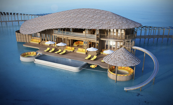 ★目前酒店已經(jīng)建成了較多的水屋并營業(yè),賈尼水屋摒棄了索尼娃富士的原始風(fēng)貌,顏值是比較高的,除了超大泳池,水滑道(部分房間有,需要加價),網(wǎng)床和經(jīng)典的下沉式圓桌,該酒店開天辟地的給別墅造了個電控天窗,晚上可以夜觀星象,滿足游客的獵奇心理。