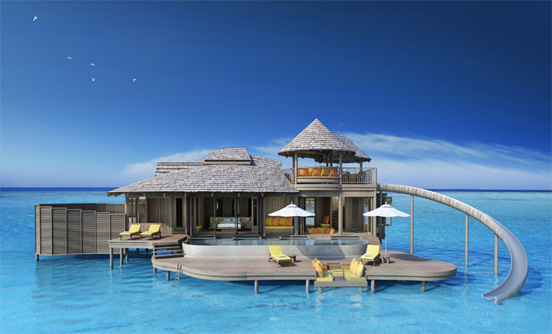 房間面積相當(dāng)大,帶私人泳池,島上的沙灘一級棒,該島另一大特色就是水上別墅的水滑梯是其一大特殊體驗,別墅臥室設(shè)計...