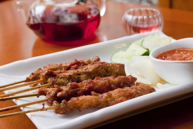從裝飾精美有空調的賓館、飯店到喧鬧的咖啡店、平民菜館;從市場里的小吃店到街邊小攤,應有盡有。沙嗲是最受歡迎的馬來食物,它是將切塊并鹵上香料的牛肉、羊肉、雞肉用細竹簽串起來到炭火上烘烤而成的食品,咝咝作響的沙嗲配以濃香的花生醬、生洋蔥、小黃瓜和米糕一起吃。沙嗲被稱為馬來西亞民間的“國萊”。咖喱飯、椰漿飯、油飯、番茄飯、咖喱牛肉、咖喱雞、怡保面食??以米飯為主食的馬來飯菜,以辛辣和咖喱味而著稱。