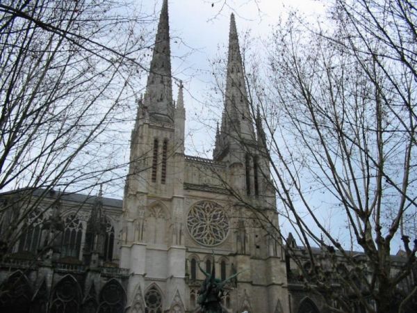 波爾多市中心,隔著教堂前的廣場和市政廳相對。教堂建于11世紀,主殿是