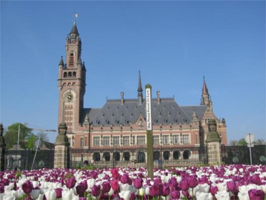 荷蘭紅磚建筑,屋頂是灰色石板,屬于新文藝復興風格。由于整個建筑極為宏大,鐘樓高達80米。宮中有很多各國送來的禮物,以示對法庭的支持。