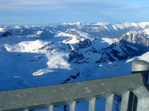 瑞士因特拉肯市正南處的阿爾卑斯山群之中,在少女峰旁,主峰海拔2970米,因為擁有阿爾卑斯山最長的空中索道及險峻雪坡而著名,而游客們更是因為這里是007系列影片《女王的秘密使命》《鐵金剛勇破雪山堡》中詹姆斯·邦德驚心動魄的打斗場面的拍攝外景地而慕名而來。再沒有比在雪朗峰海拔近三千米的全景觀景臺欣賞莊嚴的艾格峰、僧侶峰和少女峰更好的地點了。