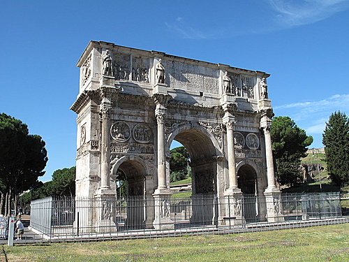 羅馬城現存的三座凱旋門中年代最晚的一座。它是為慶祝君士坦丁大帝于公元312年徹底戰勝他的強敵馬克森提,并統一帝國而建的。