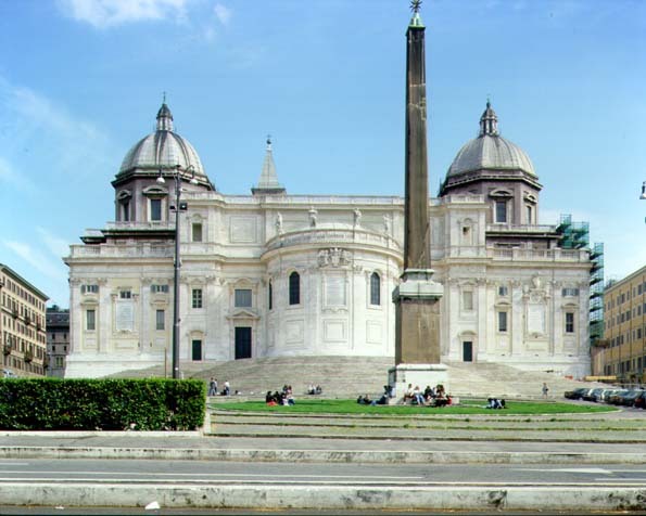 羅馬之冠;右側西斯托5世的禮拜堂是文藝復興后期的,左側帕奧里那的禮拜堂是17世紀初期巴洛克藝術風格的;最后,教堂的正立面是18世紀興建的,具有典型巴洛克風格。
