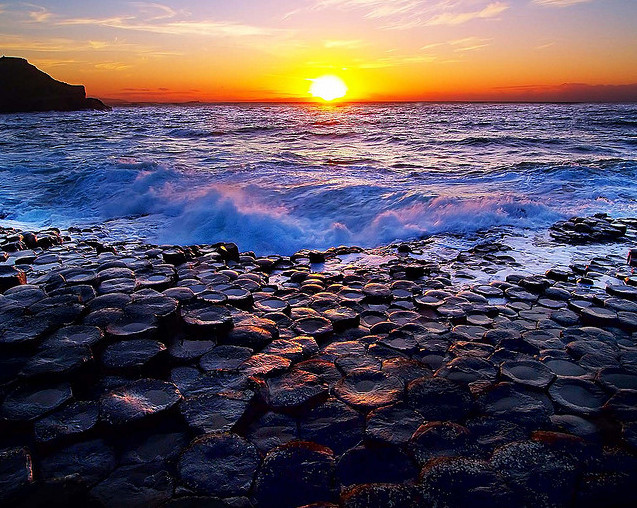 巨人之路(Giants causeway),屬于世界遺產,是愛爾蘭著名的旅游景點,沿著一條狹窄且二邊有對稱柱子的道路,開始一段短暫而奇特的漫步。可以先在游客中心取得旅游信息,一路上按圖索驥,找找看代表不同意義的石頭,巨人的鞋子,巨人的祖母,回程時可以搭乘小巴士,大概50P左右,當然也可以來回采步行方式,大概從旅客中心到景點步行約20~30分鐘。