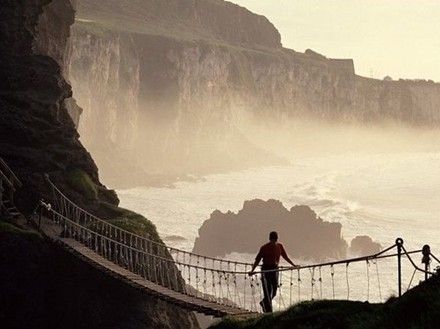 著名的卡里克空中索橋是北愛爾蘭最驚險的景觀之一,坐落于北安特里姆海岸上巴林托伊東部。索橋連接一個小島。周圍景色秀美,萊斯林島和蘇格蘭的風光一覽無余。地下巨大的洞穴清晰可見,這些洞穴曾經是造船的人用來躲避暴風雨的天然屏障。 相傳300年前,漁民們搭建了這座索橋到島上捕捉三文魚。后來索橋被改建了很多次。這項工程是由一位專業繩降運動員最先開始的,他沿著懸崖的表面滑下,然后在海水退潮的時候繞到懸崖的正面再從遠的一面爬上來。這座橋原本只是為了方便漁人通往卡里克島上捕捉三文魚,今卻成為無畏的游客們一項季節性的挑戰。到索橋的路程有點遠,但是美妙的景色,奇特探險絕對讓你不虛此行。