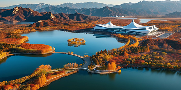 08:30 游覽雁棲湖位于京郊懷柔城北8公里處的燕山腳下,響水湖附近,北臨雄偉的萬里長城,南偎一望無際的華北平原,是一處風光迤邐的水上樂園。雁棲湖水面寬闊,湖水清澈,每年春秋兩季常有成群的大雁來湖中棲息,故而得名;