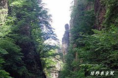 百里峽望京坨山麓的三條幽深峽谷:海棠峪、十懸峽、蝎子溝,形如鹿角,全長52.5公里,故稱“百里峽”。這里奇巖聳立、絕壁萬仞、草木橫生,千奇百怪的巖溶壯景,集雄、險、奇、幽與一體,構成了一幅濃墨重彩的百里畫廊,有詩云:“京畿勝景在三坡,三坡魅力數溝各。幽峽三道藏絕景,虎嘴天橋一銀河。”這就是對百里峽的真實寫照。蝎子溝:步入景區,造型逼真的“仙官”便會將游人引進蝎子溝。此溝長達12.5公里,因為溝中遍生的蝎子草而得名。該草形如幼桑,如肌膚觸動其葉,頓感疼痛難忍,但少時既愈。蝎子溝不僅具有“一線天”的壯景,而且“龍潭映月”、“磨耳崖”、“鐵鎖崖”三景最令人嘆為觀止,拍手叫絕。