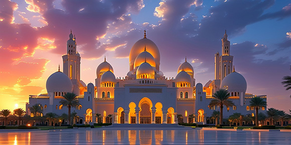 酒店早餐后 ,參觀謝赫扎伊德清真寺 ,是阿聯酋最大的清真寺 ,耗資55億 美元 ,歷時13年 ,是紀念阿聯酋第一任總統謝赫扎伊德而興建的(入內參 觀約45分鐘 ,周末及禱告日和特殊節假日舉行儀式時外觀20分鐘)。