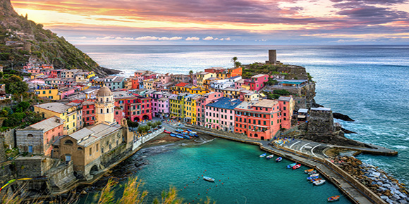 13:00 游覽五漁村(游覽約30 分鐘),碧澈的海水和奇巧的險(xiǎn)峰讓這五個(gè)靜靜躺在利古里亞海邊山坳中的小漁村有了如詩(shī)如畫的醉人之美。沉浸于古老的遺跡與壯觀的景致在碧綠大海的襯托下,沿線右邊是壯麗陡峭的山崖,左邊即是蔚藍(lán)深邃的利古里亞海,遠(yuǎn)看彷佛十分驚險(xiǎn),就像走在石壁之中,讓走在小徑上的戀人緊緊地牽起雙手,佳人美景更添濃情蜜意。