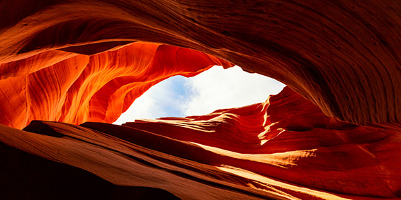 【羚羊峽谷】(不少于 2 小時)位于那瓦荷印地安人保留區(qū) ,走進一線天的峽谷內(nèi) ,可以看到峽谷內(nèi)因巖石風(fēng)化與光線不同明亮所產(chǎn)生不同的造型,格外奇特與漂亮。隨手拿一把沙丟向稍微有斜度的巖石上,細(xì)沙慢慢流下,非常美麗。羚羊峽谷是由沙漠中偶發(fā)豪雨的急流切割臺地所形成的裂縫,桃紅與巧克力色的嶙峋山壁向上延伸百余呎,并隨著陽光角度不同而產(chǎn)生繽紛色彩,充滿神秘之美,是地球上最奇特詭異的景觀之一 ,也是大自然攝影家的最愛。