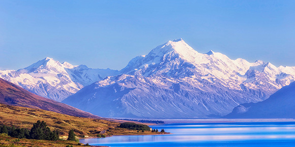 【好牧羊人教堂】(約 20 分鐘)欣賞冰川特色湖-【蒂卡普湖 】(約 20 分鐘),后帶您 前往【漫步庫克山國家公園】(約 20 分鐘)。后乘車前往基督城。