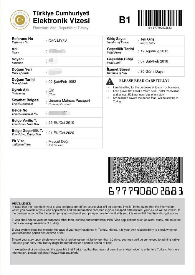 土耳其電子簽證樣本
