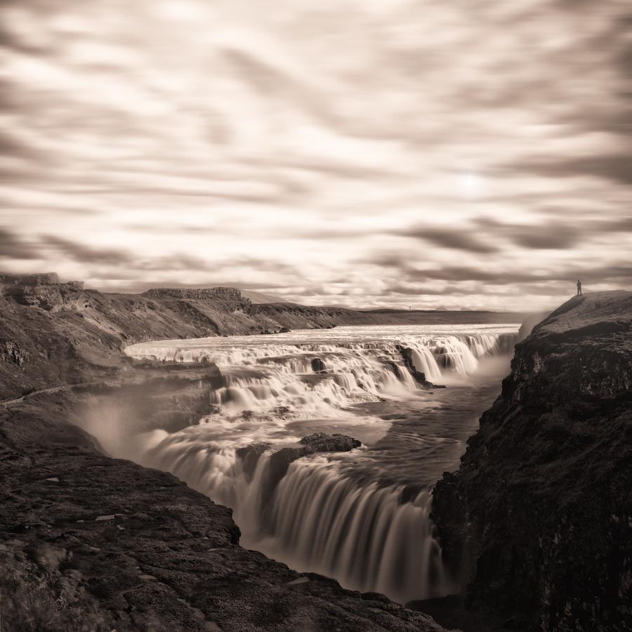 黃金瀑布,這可以說是冰島旅游景點中的精華之一。它離冰島首都雷克雅未克不遠,僅距一百多公里,是冰島最大的斷層峽谷瀑布,雄奇壯觀,水流湍急,轟鳴巨大,水霧彌漫,水滴金光閃爍,就像黃金煉就,這也是其因此得名的原因。此外,也時常在瀑布中閃現出瑰麗的彩虹,讓人感覺神圣而綺麗。如果要感受冰島的神奇美景,黃金瀑布定然有資格作為首選之一。