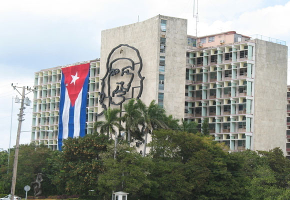 與口若懸河的大胡子相比,另一個革命領導人切格瓦拉的胡子就短的多。革命廣場旁邊一座旅館墻壁上,用鐵條焊出切的面部輪廓,神采飛揚。