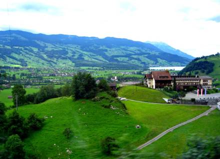 當時我就一直在心里想:究竟有什么面貌特色使她那么迷人呢?汽車離開漢諾威之后,一直穿行于丘陵叢林之間,沿途森林蓊郁蔥蘢,間或可見一幢幢玲瓏剔透的尖頂農舍,掩映在綠樹青山之間,既幽雅,又別致,恍若走進了一幅富于異國情調的風景畫里。