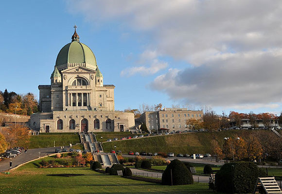 看來我來蒙特利爾旅游很是恰當(dāng)呀。這是一座浪漫甚至奢華的城市,皇家山頂是一覽蒙特利爾全城的最佳去處,圣勞倫斯河緩緩的流淌,哥特式的尖頂在陽光的照耀下熠熠生輝。那種略帶陳舊的感覺,不由讓人生出一種親切感。這里最明顯的文化特色主要體現(xiàn)在這里的教堂上。圣約瑟夫大禮拜堂都是按照